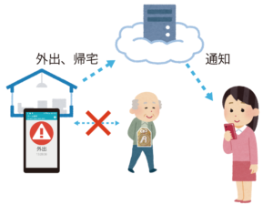 在宅、外出の状況を、別途オプションにより離れた家族へ通知します。※介護保険適用外の機能です。別途通信費がかかります。